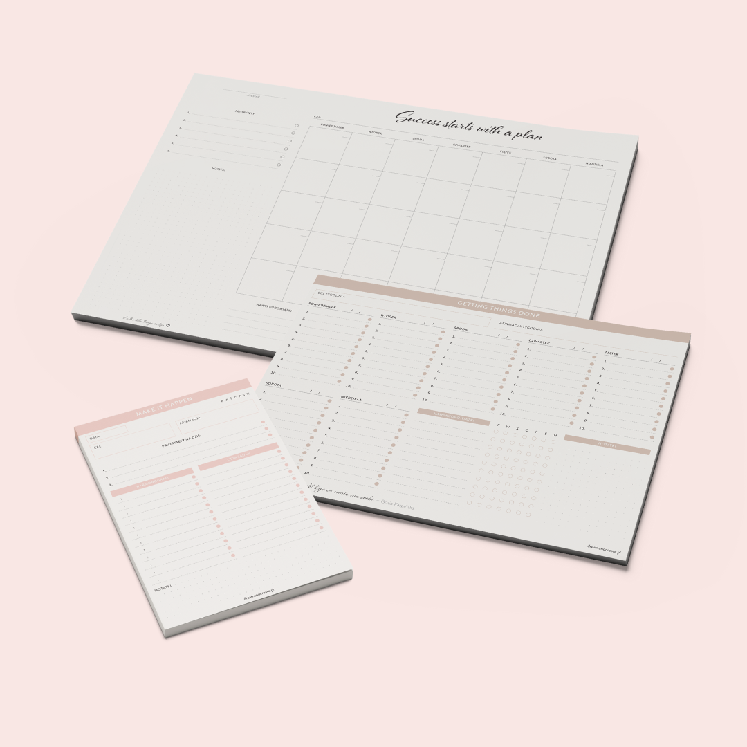 Tak jak w biuwarach dziennym i tygodniowym, kartki można odrywać i powiesić nad biurkiem czy na lodówce. Możesz też złożyć kartkę 2x i dołożyć do planera, np. do tylnej kieszonki, żeby się nie zgubiła.